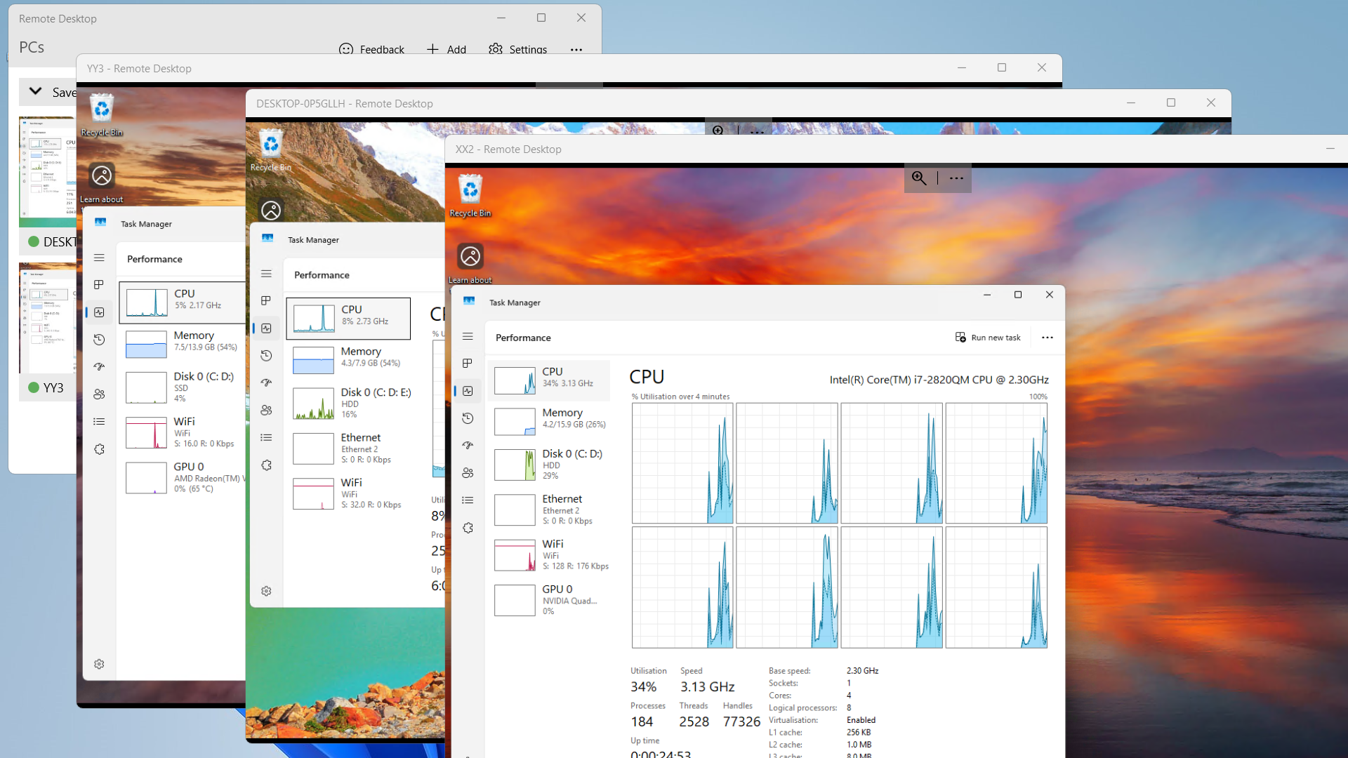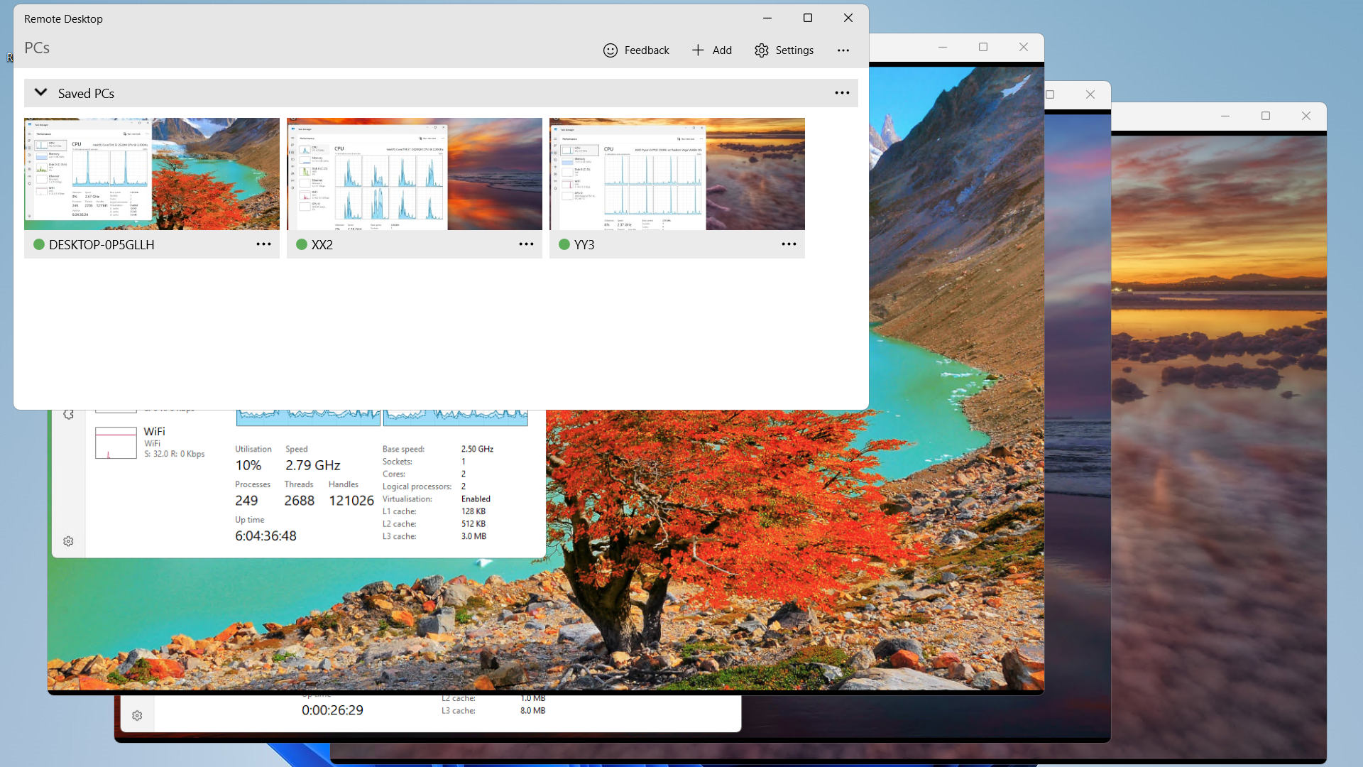 going crazy with ms windows ms store remote desktop app connected to intel i5, i7 and amd ryzen 5